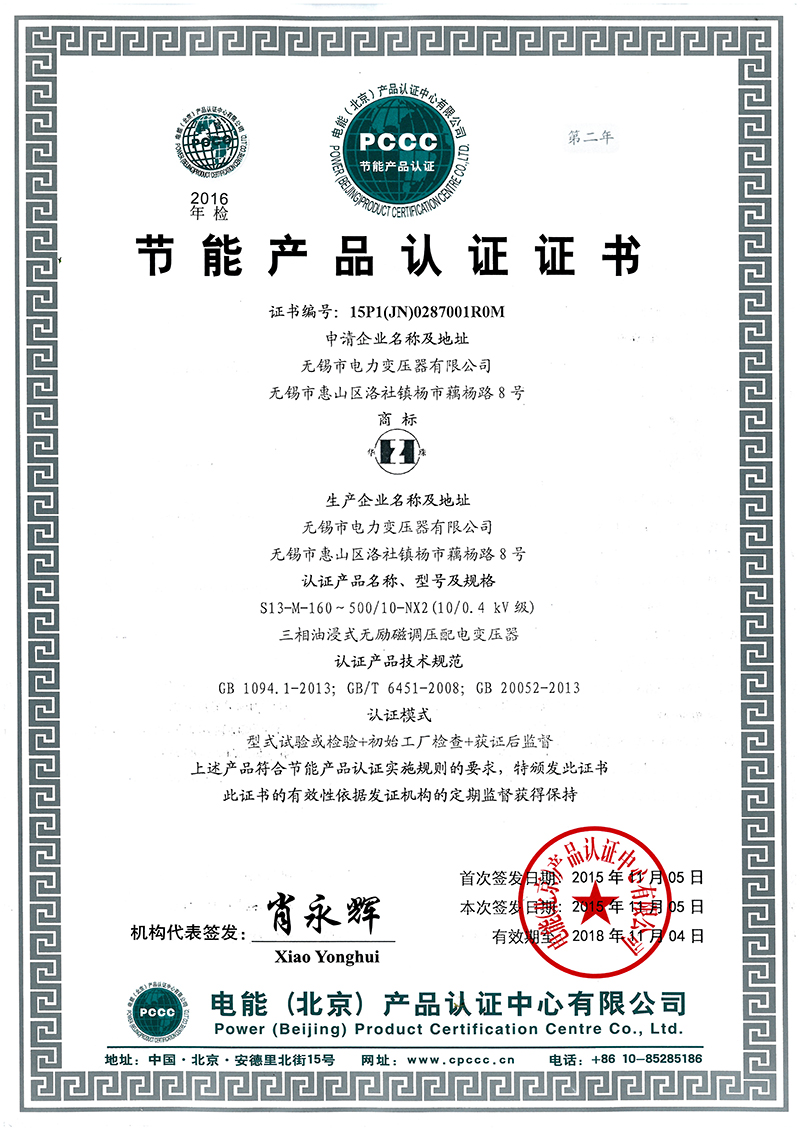 • 油變節(jié)能產(chǎn)品認(rèn)證證書